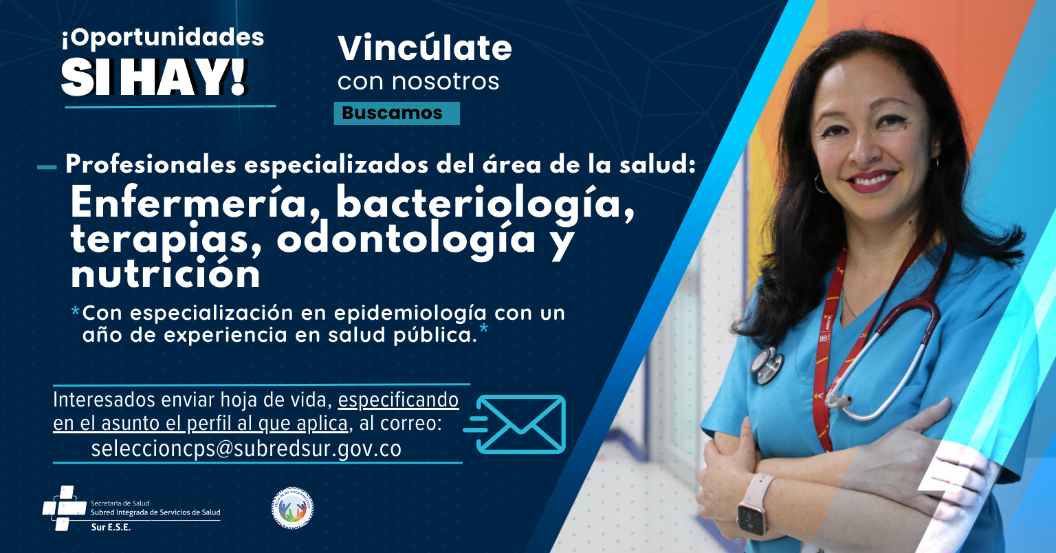 Lunes a Viernes 7:00 am - 4:00 pmcontactenos@subredsur.gov.co+57 (601) 7300000
